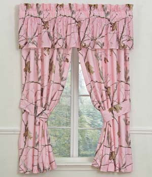 These pink camouflage curtains are in officially licensed Realtree AP Pink design. They are 66" in length, 42" wide per panel (2 panels included), with a 3 inch rod pocket.